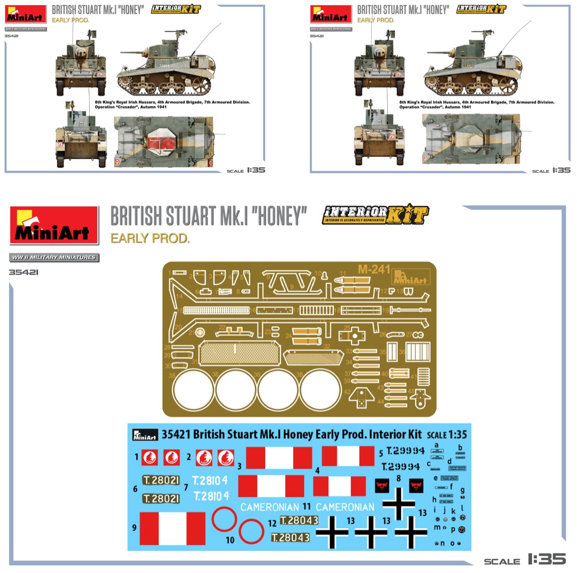 British stuart Mk.I 'Honey' Early Production Interior Kit in a 1:35 scale. This meticulously crafted plastic model kit captures the detailed design of the iconic light tank used by British forces during World War II.