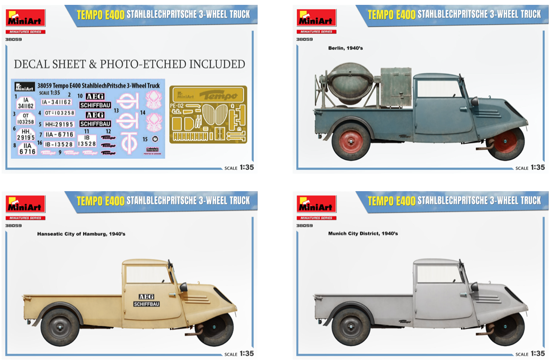 Miniart - 1/35 Tempo e400 stahlblechpritsche 3-wheel truck
