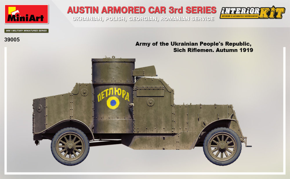 Miniart - 1/35 Austin Armored Car 3rd SERIES: UKRAINIAN, POLISH, GEORGIAN, Romanian SERVICE. With Interior KIT