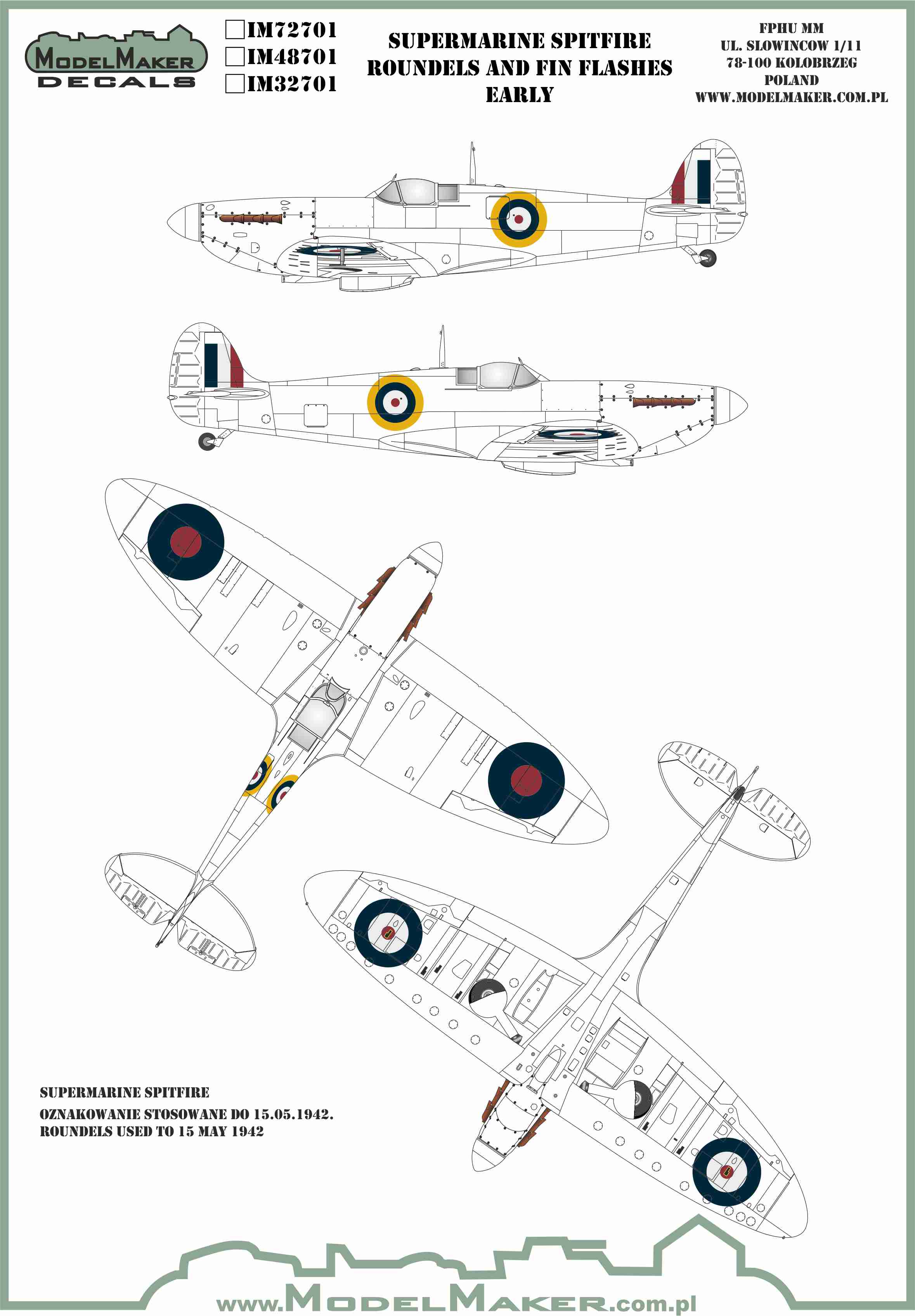 Model Maker - 1/72 Supermarine Spitfire roundels and fin flashes-EARLY