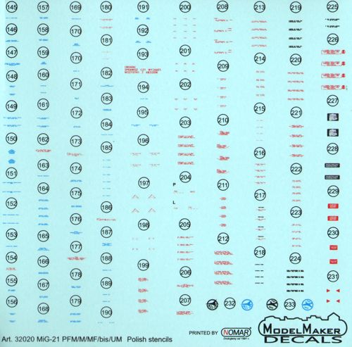 Model Maker - 1/32 Mikoyan MiG-21PFM/Mikoyan MiG-21M/Mikoyan MiG-21MF/Mikoyan MiG-21bis/Mikoyan MiG-21UM Polish stencils
