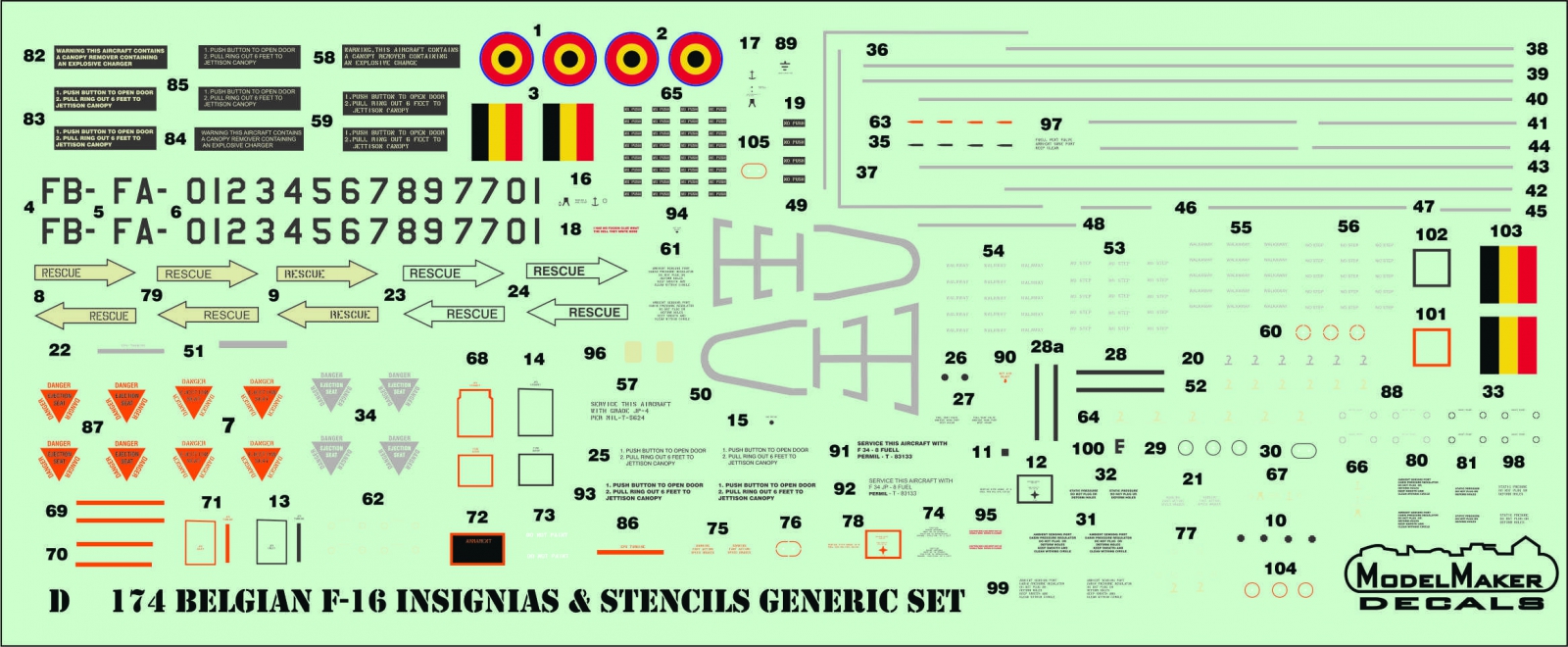 Model Maker - 1/32 Belgian f-16 insignias & stencils-generic set