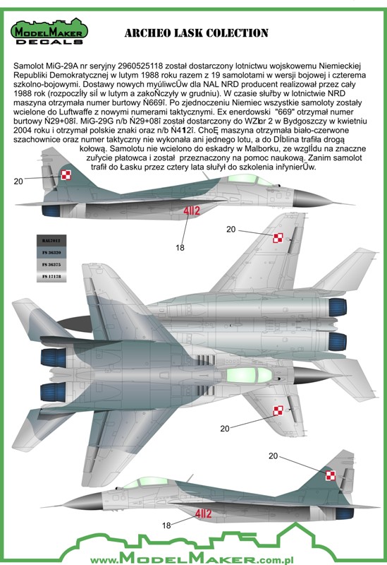 Model Maker - 1/48 Archeo Lask Collection. Archeo Lask Collection. 12 planes and helicopters from 32 Air Tactical Base Poland. A group of soldiers, modelers and aviation enthusiasts who are restoring aircraft once used in the Polish Air Force. The organization is non-profit and all the work is done outside of working hours. The collection currently includes twelve aircraft and helicopters and is located on the premises, and each one has its own unique stories. Many of them in his brilliant years served at the airport in Lask. The idea for this decals created on the fifth edition of the Lask Model Show. when it turned out that the number of models aspiring to the awards for the best model in the colors of the collection is low due to the lack of just a decal for these planes and helicopters. I suggested to solve this problem with set for the whole collection, what has been very favorably received by the Group.