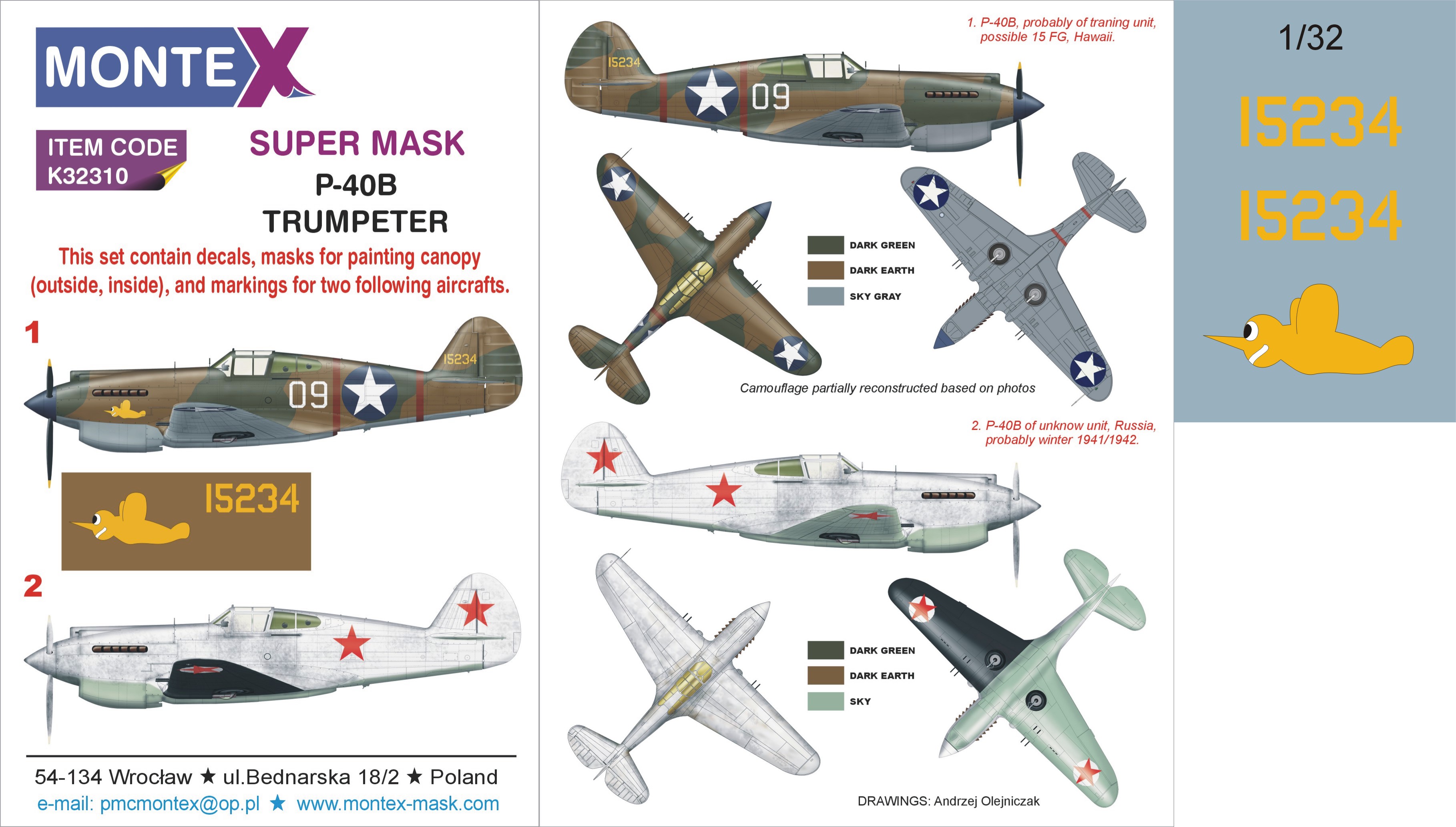 Montex - 1/32 Curtiss P-40B Tomahawk (for Trumpeter kits) 2 canopy masks (outside and inside canopy masks) + 3 insignia masks + decals