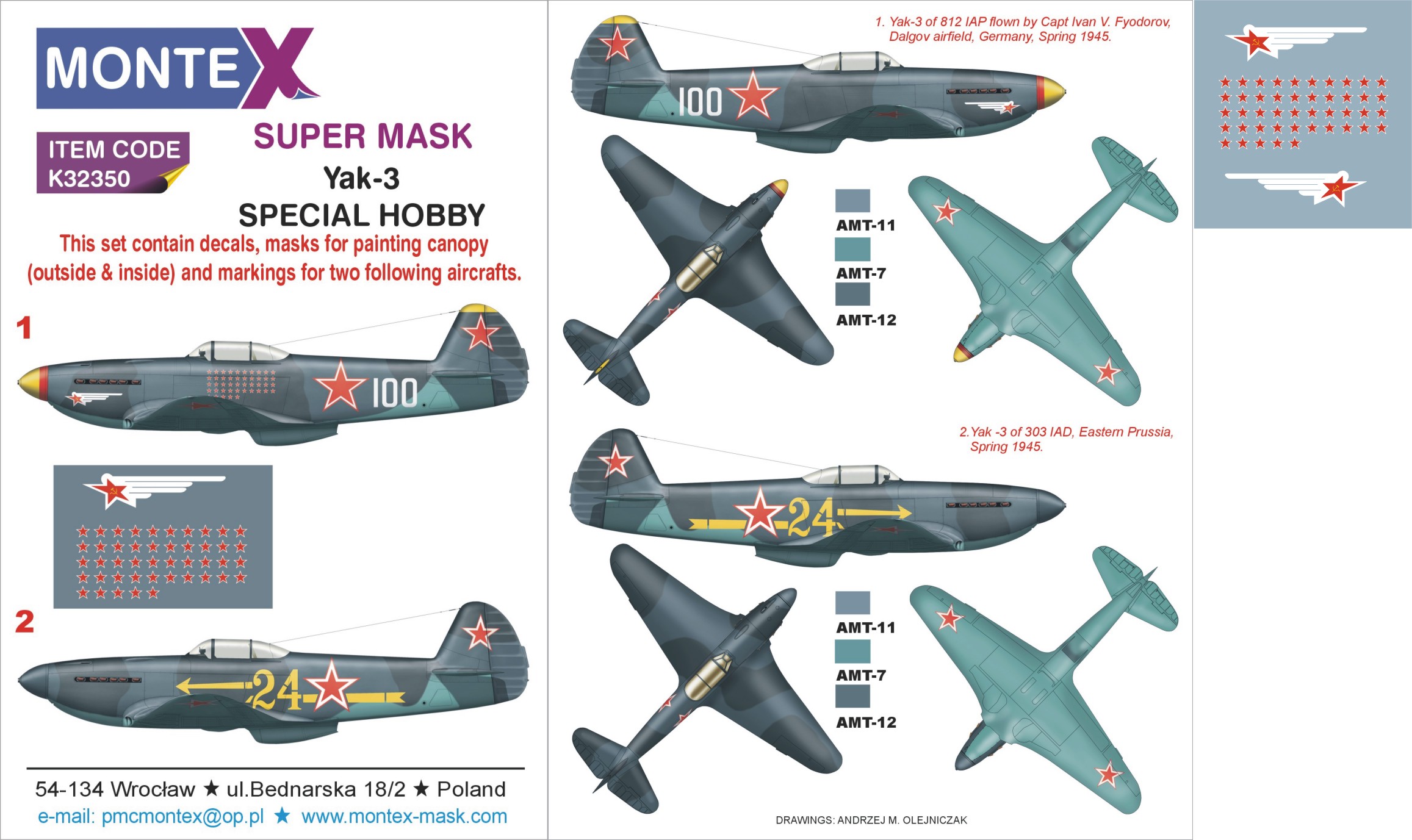 Montex - 1/32 Yakovlev Yak-3 2 canopy mask (outside & inside) + 2 insignia masks + decals (for Special Hobby kits)
