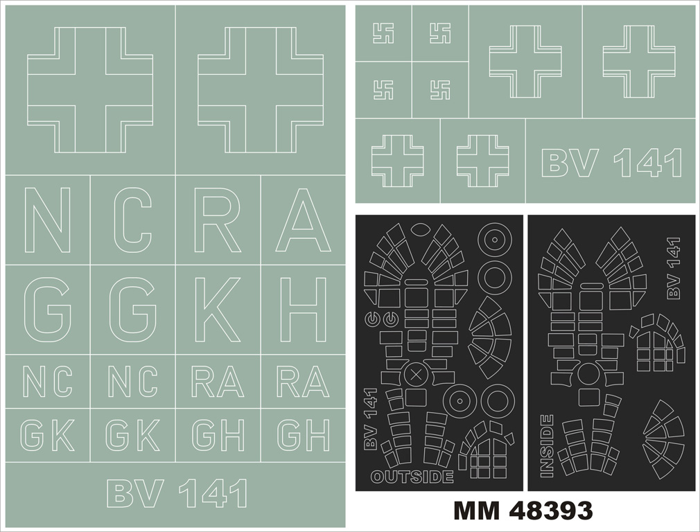 Montex - 1/48 Blohm-und-Voss Bv 141 2 canopy masks (outside & inside) + 2 insignia masks (designed to be used with Hobby Boss kits)