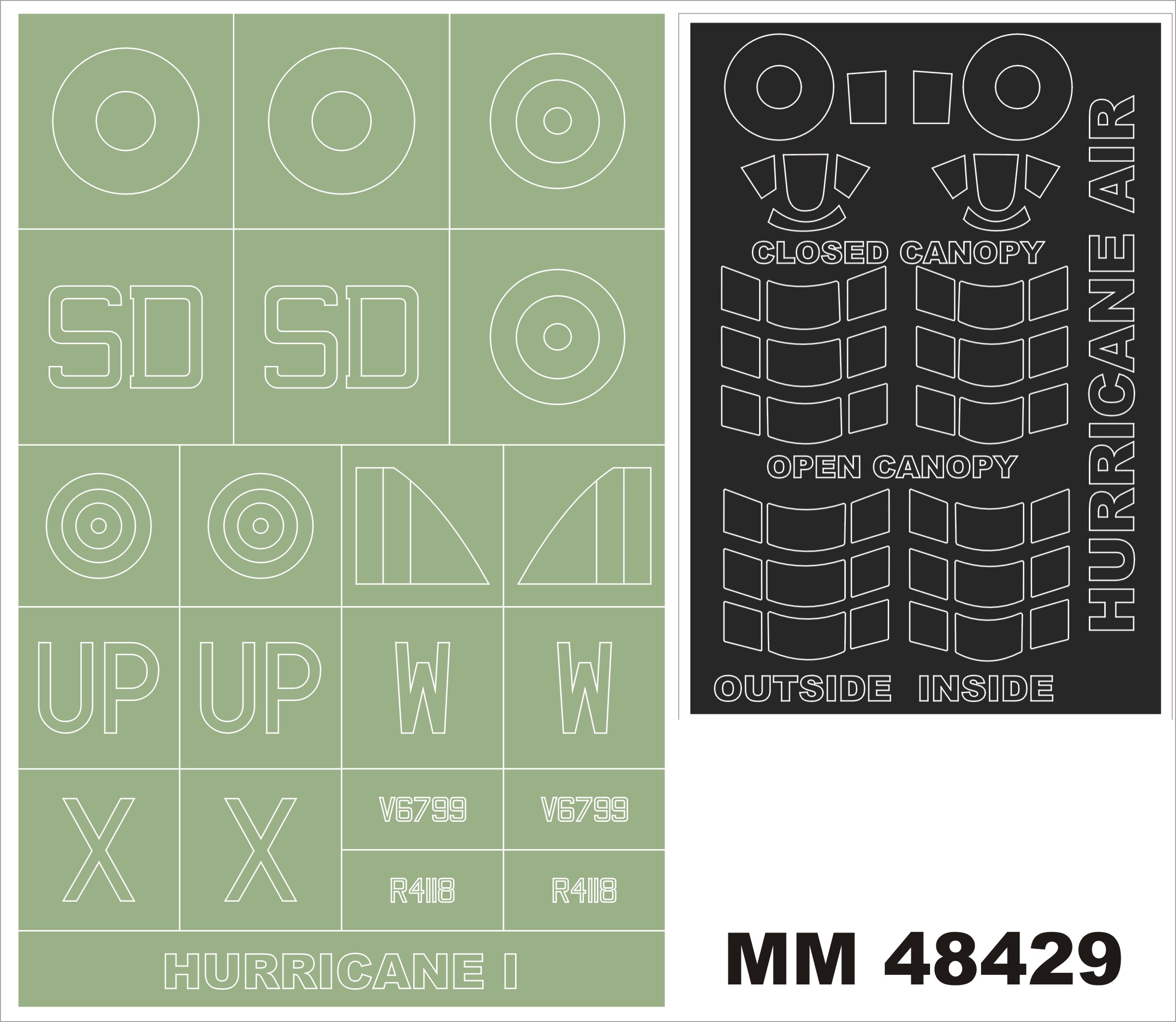 Montex - 1/48 Hawker Hurricane Mk.I (for Airfix AX05127 kits) 2 canopy masks (outside and inside canopy masks) + 1 insignia masks