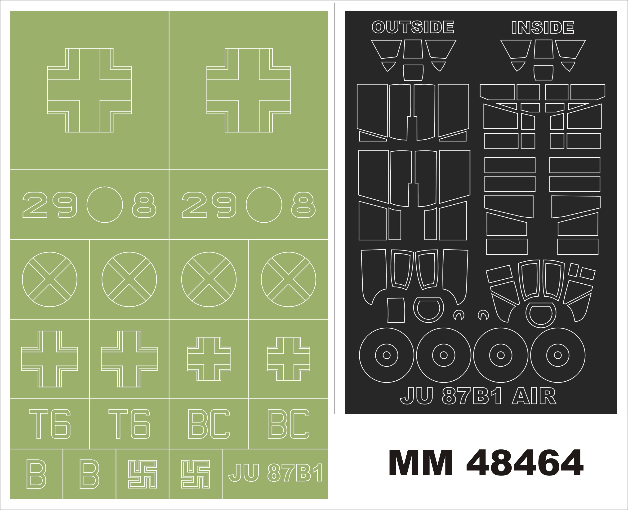 1/48 Junkers Ju-87B-1 Stuka 2 canopy masks + 1 insignia masks