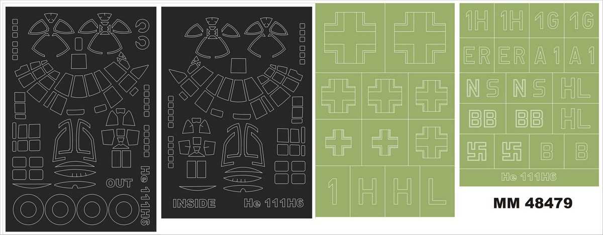 1/48 Heinkel He-111H-62 canopy masks + 3 insignia masks