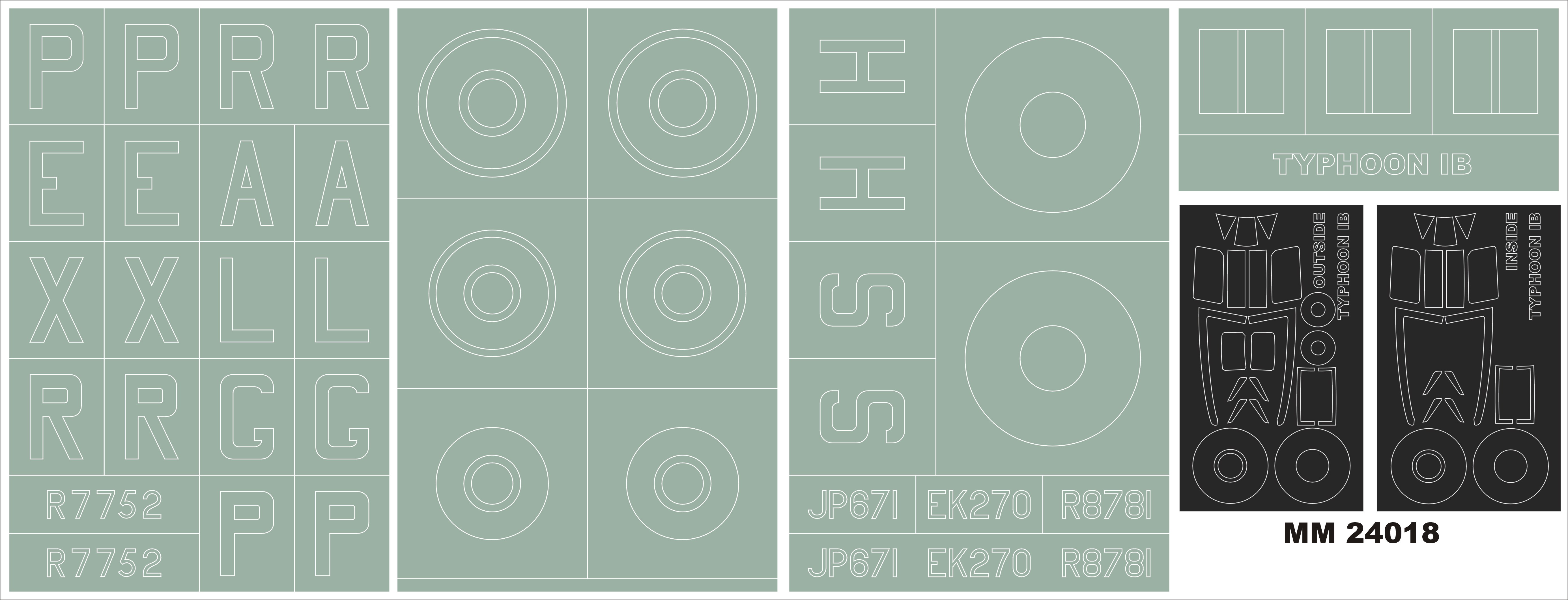 1/24 Hawker Typhoon Mk.IB CAR DOOR canopy masks, insignia masks