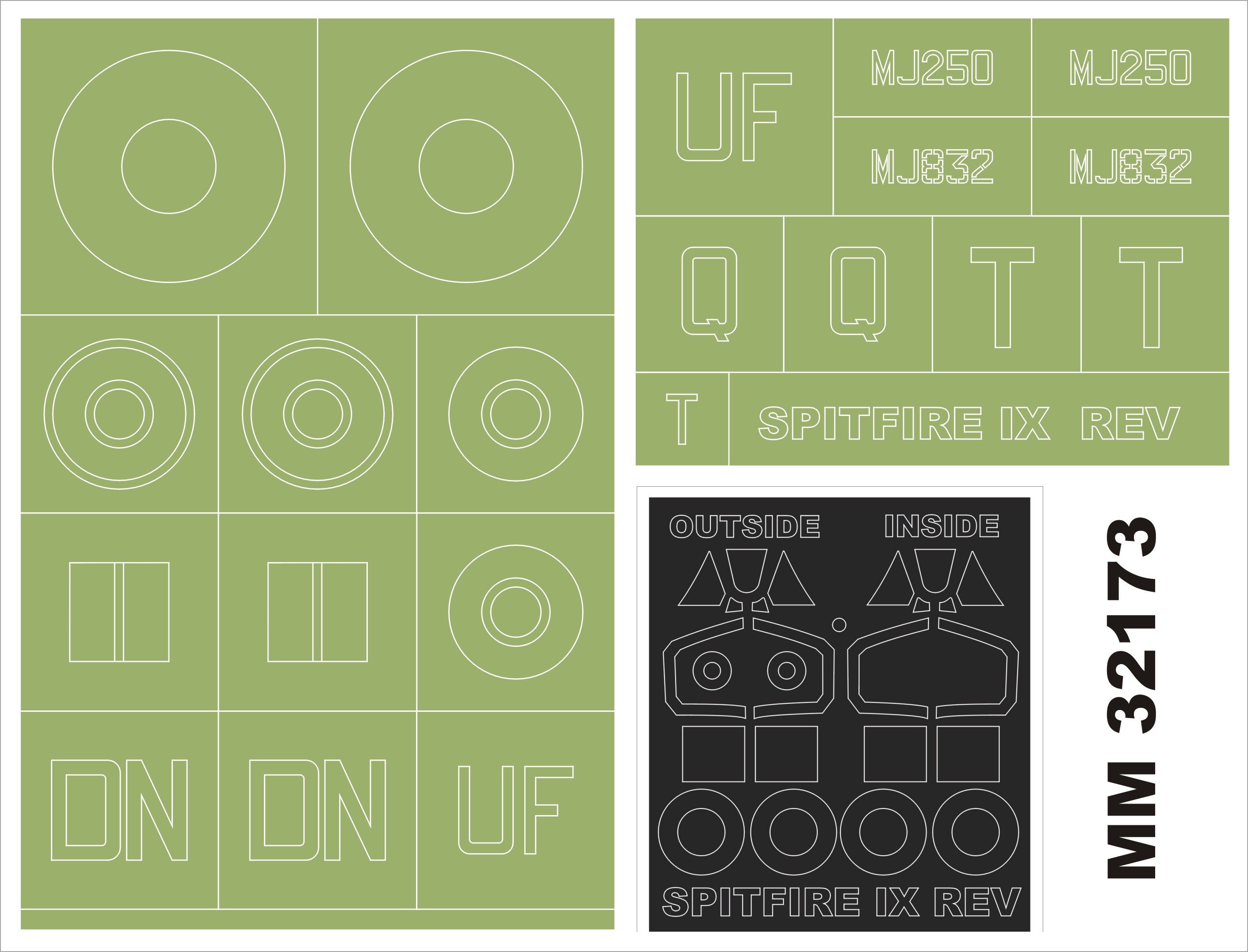 Montex - 1/32 Supermarine Spitfire Mk.IXC 2 canopy masks (outside & inside) + 2 insignia masks (for Revell kits)