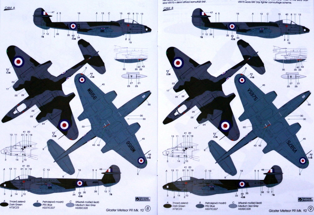 MPM - 1/72 Gloster Meteor PR.10 (Limited!) This dedicated high-altitude reconnaissance version of the Meteor twin-jet fighter was operated in the 1950s over the Middle and Far East as well as from West Germany bases where the type was used to peep over the so-called Iron Curtain. The decal sheet brings markings for two machines flown in the FRG, one of them in two colour schemes. Then also two machines in bare metal, one of which operated from Egypt flown by a WW2-ace M.Mansfeld while the other one was based in Singapore.