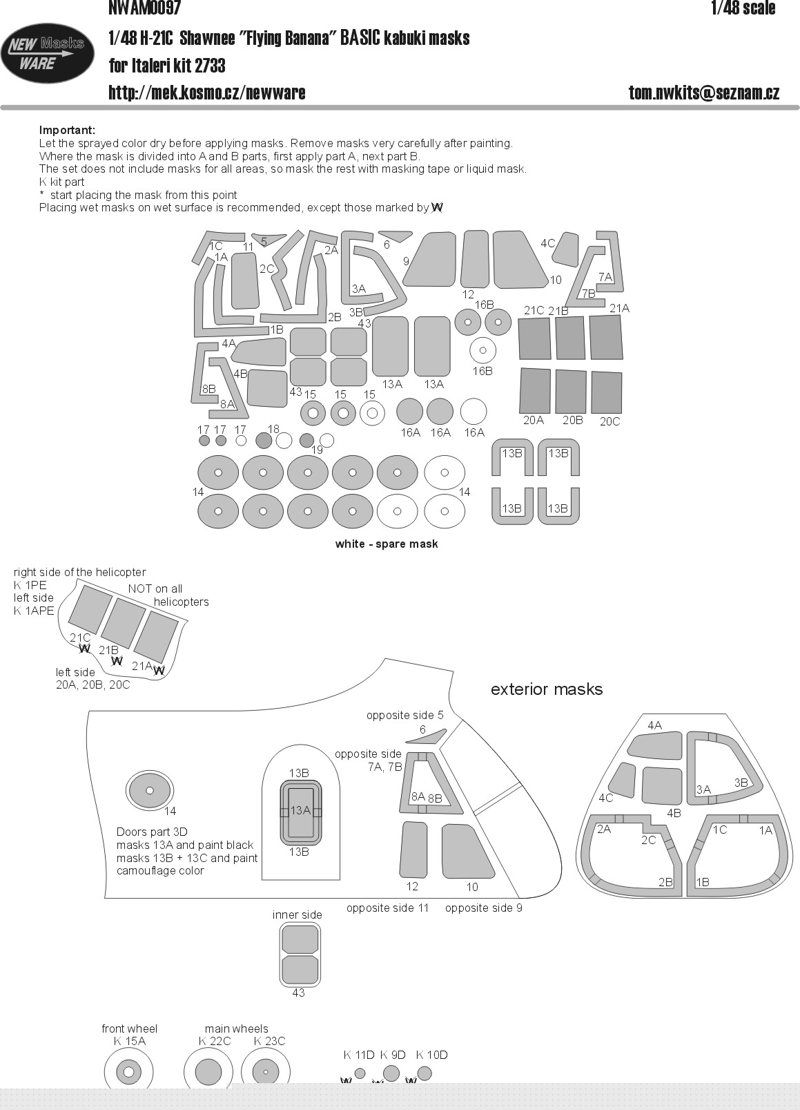 New Ware - 1/48 Mask for Piasecki H-21C Flying Banana/Shawnee BASIC (for Italeri kit IT2733)