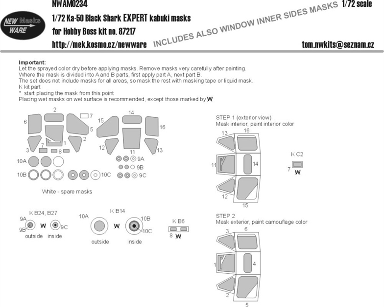New Ware - 1/72 Kamov Ka-50 Hokum Black Shark EXPERT kabuki masks, windows including inner sides, wheels. other clear parts, wheels (for Hobby Boss kits)