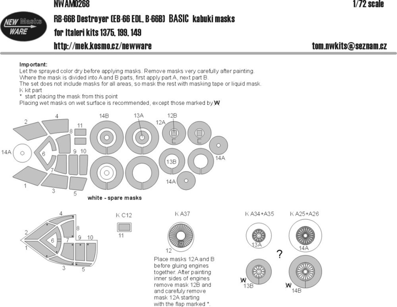 New Ware - 1/72 Douglas RB-66B Destroyer BASIC kabuki masks windows, wheels, air intakes(for Italeri kits)