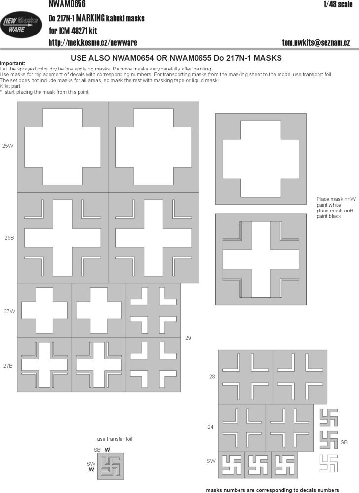 New Ware - 1/48 Dornier Do-217N-1 National Insignia markings kabuki masks (for Icm kits)