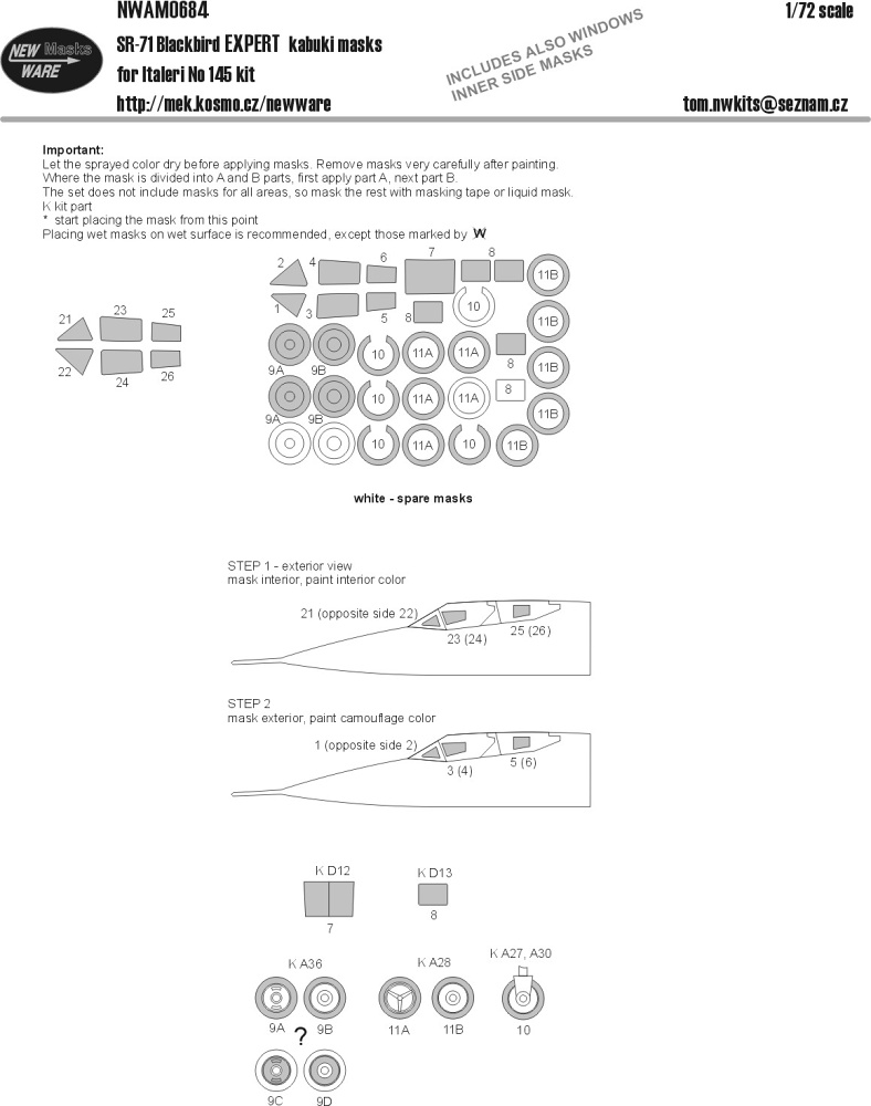 New Ware - 1/72 Lockheed SR-71 Blackbird Expert kabuki masks windows including inner side masks, other clear parts, wheels (for Italeri kits)