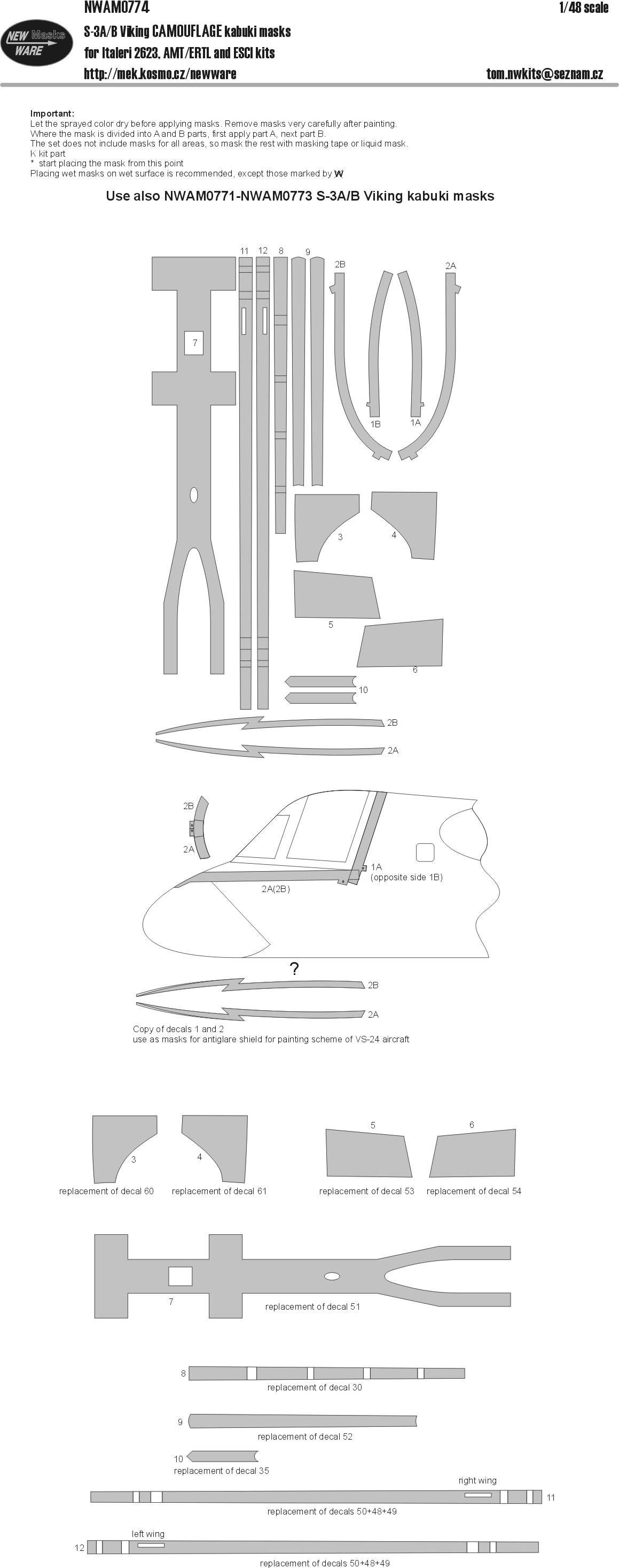 New Ware - 1/48 Lockheed S-3A/B Viking, ES3A Shadow Camouflage kabuki masks (for Italeri kits)