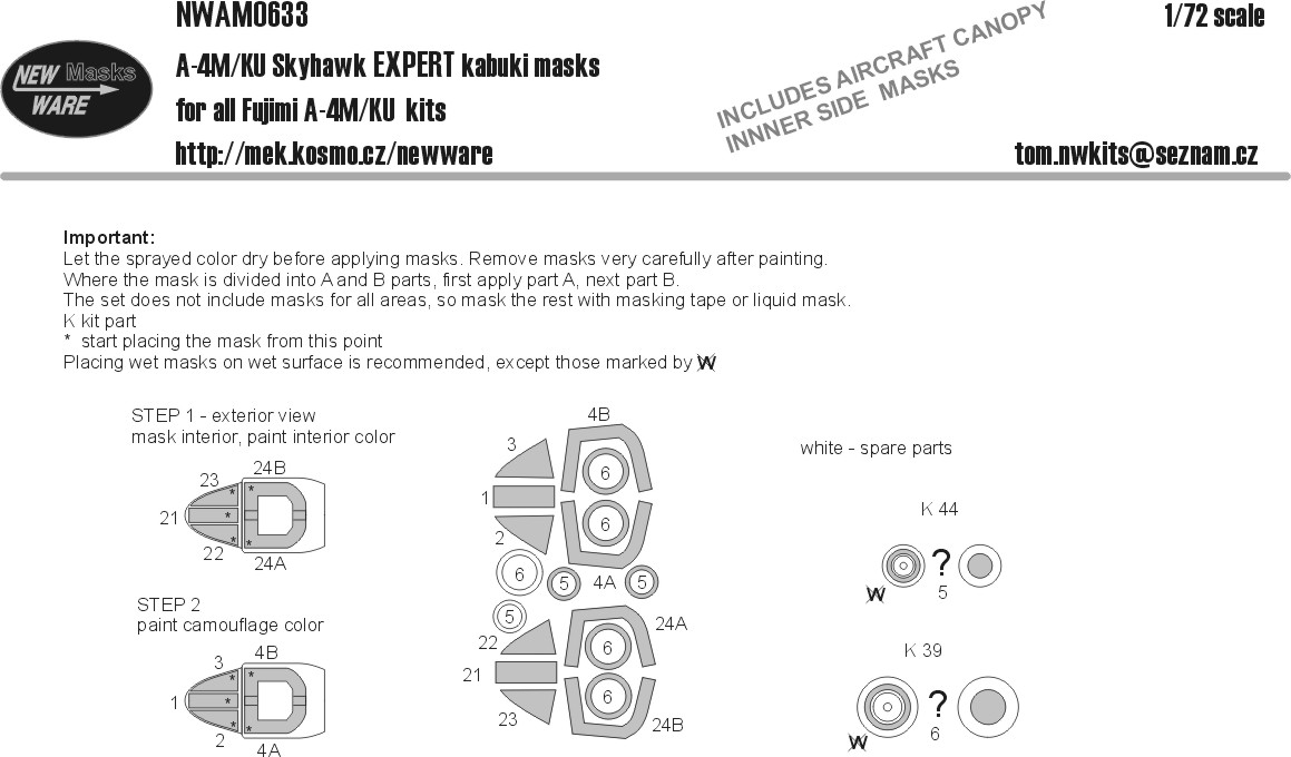 New Ware - 1/72 Douglas A-4M/KU Skyhawk Expert kabuki masks aircraft canopy including inner side masks, wheels (for Fujimi and Hobby 2000 kits)(previously NWAM0633)