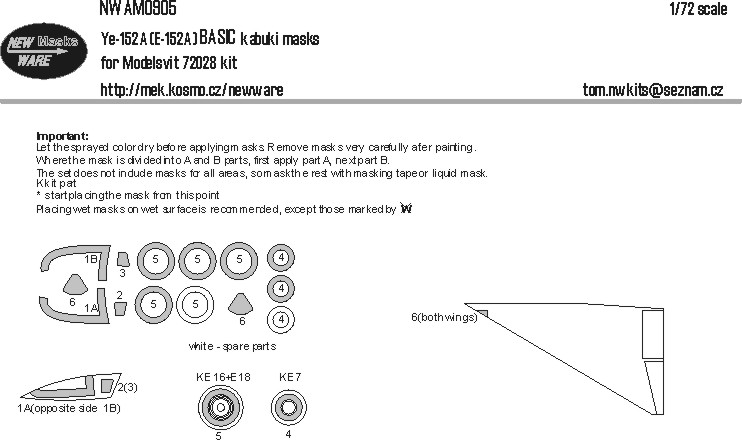 NEW WARE - 1/72 Mask Ye-152A (E-152A) BASIC (MSVIT 72028)