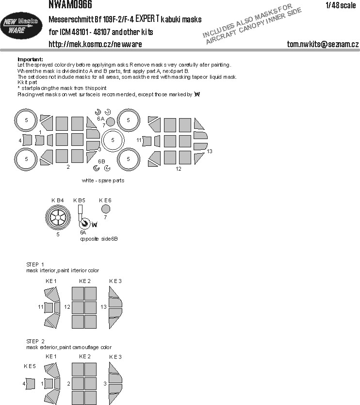 NEW WARE - 1/48 Mask Bf 109F-2/F-4 EXPERT (ICM 48102-107)