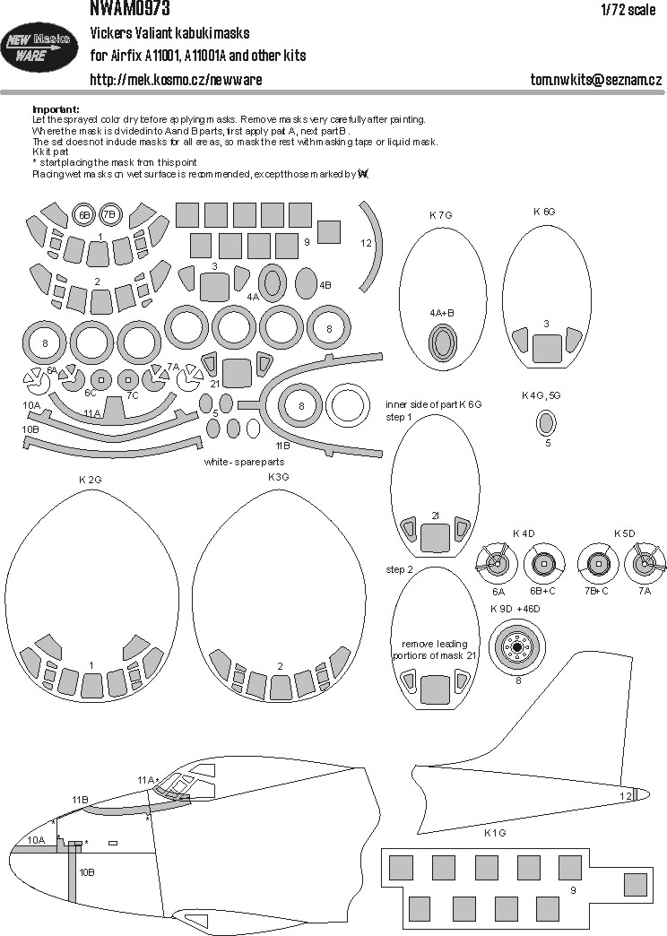 New Ware - 1/72 Vickers Valiant kabuki masks all aircraft windows, wheels, camouflage details (for Airfix kits)