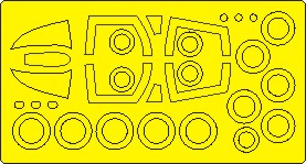 aircraft canopy including windows seal and inner side masks, landing light, wheels, antiglare shield, external tanks, elevators (for Fine Molds kits)