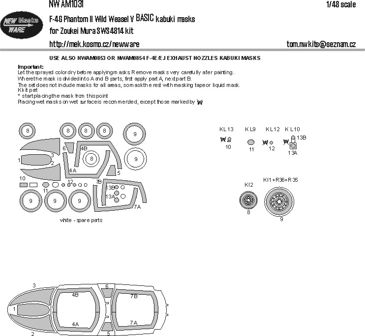 New Ware - 1/48 McDonnell F-4G Phantom II Wild Weasel V Basic kabuki masks aircraft canopy, other clear parts, wheels (for Zoukei-Mura kits)