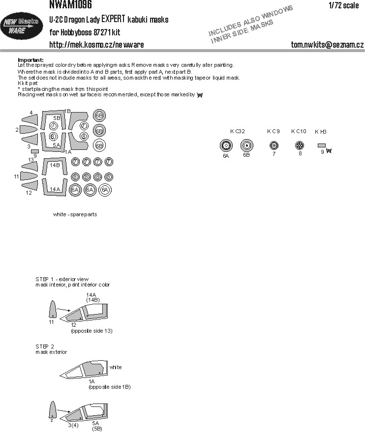 New Ware - 1/72 Lockheed U-2C Dragon Lady Basic kabuki masks aircraft canopy including inner side masks, other clear part, all wheels (for Hobby Boss kits)