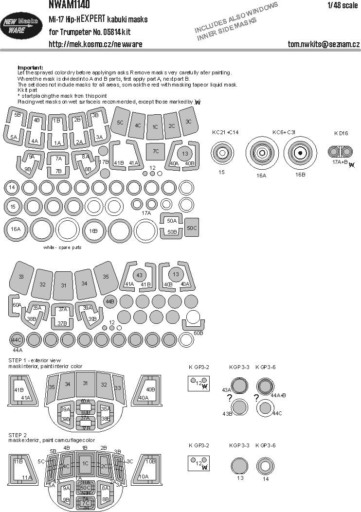 1/48 Mil Mi-17 Hip-H Expert kabuki masks for Trumpeter