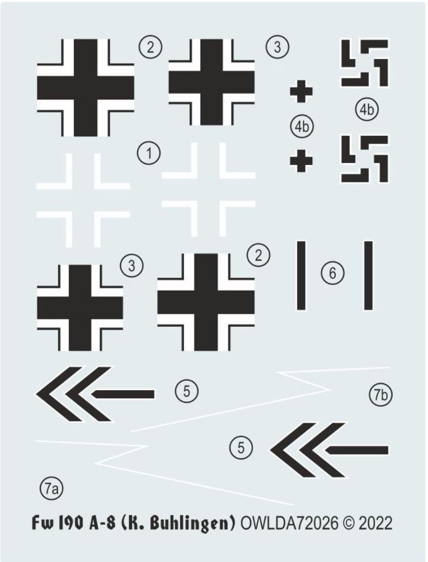 OWL Decals - 1/72 Focke-Wulf Fw-190A-8 (K.Buhlingen) Geschwaderkommodore Jg 2