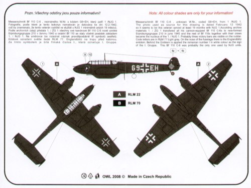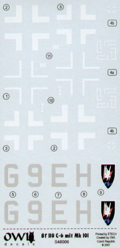 OWL Decals - 1/48 Messerschmitt Bf-110C-6 G9+EH 1/NJG 1