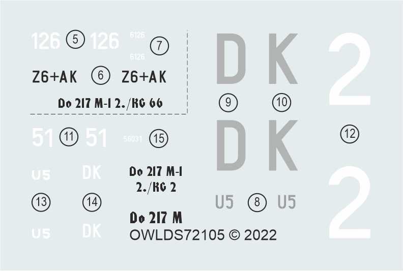 OWL Decals - 1/72 Dornier Do-217M-1 Z6+AK 2./KG 66 or U5+DK 2./KG 2