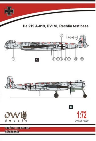 OWL DECALS - 1/72 He 219 A-019, Rechlin test base (decal)