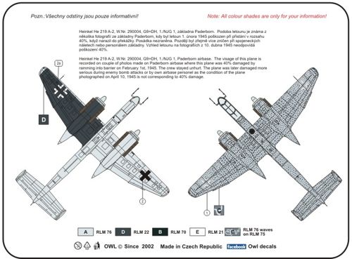 OWL Decals - 1/48 Scale Heinkel He 219 A-2 G9+DH
