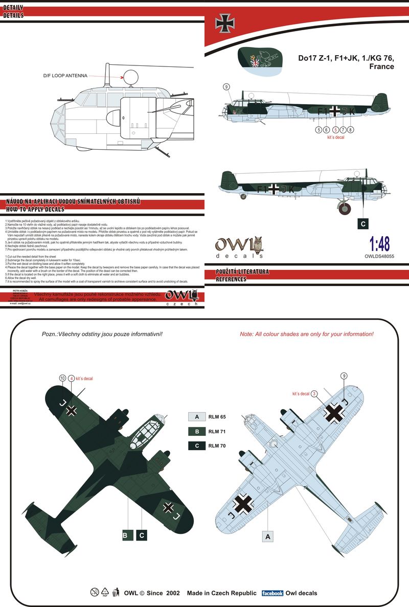 OWL Decals - 1/48 Dornier Do 17Z-1 F1+JK KG 76