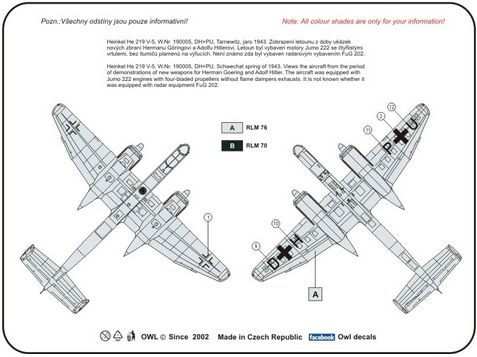 OWL Decals - 1/72 Heinkel He 219V-5 DH+PU four blades propeller (light version) (designed to be used with Dragon kits)[He 219A-5/R4 He 219B-1 He 219A-7 He 219A-0]