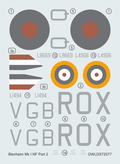 OWL Decals - 1/72 Bristol Blenheim Mk.I NF Part II ROoX (Kells) or VGoB with AI Mk.III