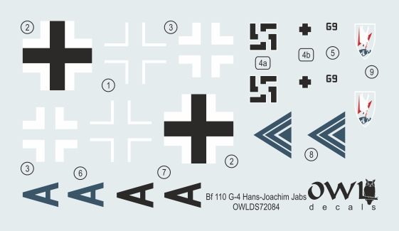 OWL Decals - 1/72 Messerschmitt Bf-110G-4 G9+AA (H.J. Jabs)