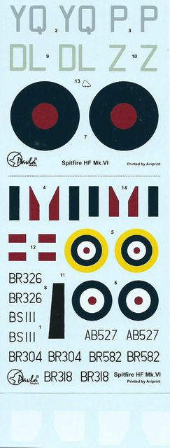 Pavla - 1/48 Supermarine Spitfire HF Mk.VI vacu canopy decal sheet (for Airfix kits)[Mk.V]