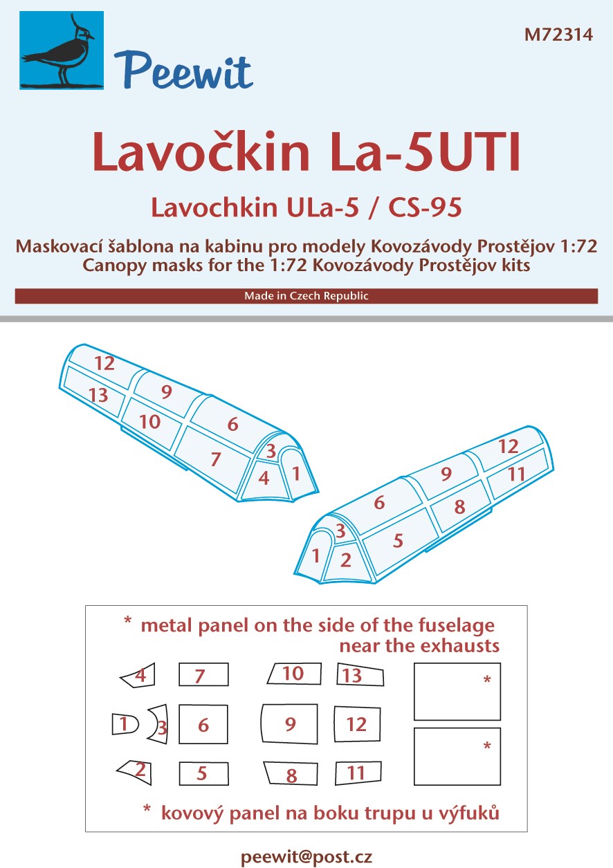 Peewit - 1/72 Lavochkin ULa-5/CS-95 masks (for Kovozavody Prostejov kits)