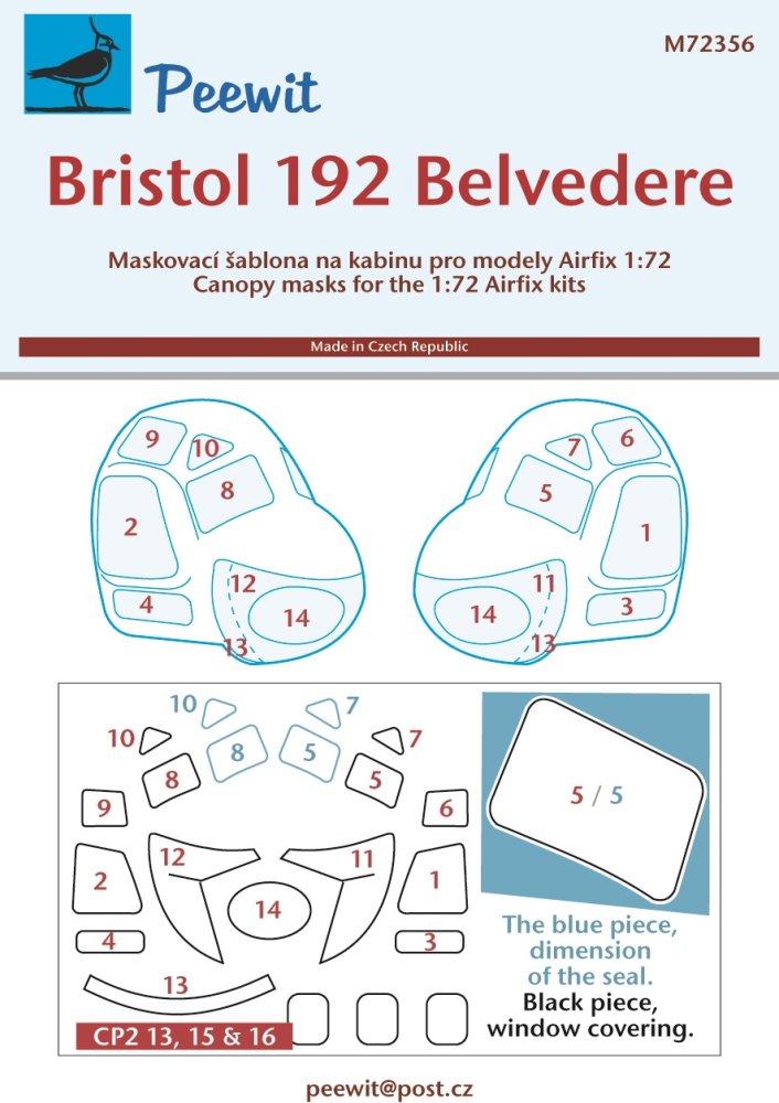 PEEWIT - 1/72 Canopy mask Bristol 192 Belveder for Airfix