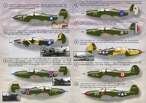 5. P-39N (42-9033) of 9 GIAD, 100 GIAP, Germany, May 1945. Personal aircraft of Gieorgij Dolnikov (15+l victories). Earlier it was yhe personal aircraft of Capart Iwan Babak (33+4victories),who become Pow on 22 April 1945