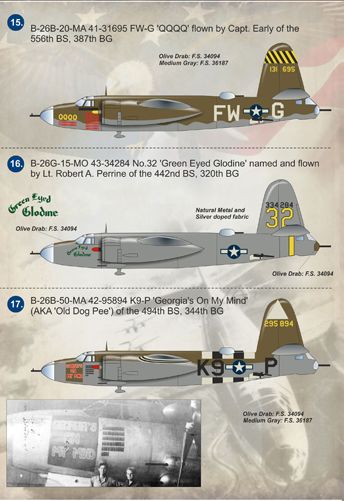 16. B-26G-15-MO 43-34284 No.32 'Green Eyed Glodine' named and flown by Lt. Robert A. Perrine of the 442nd BS, 320th BG.