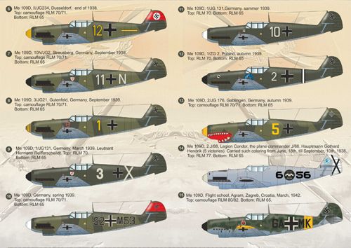 10. Bf 109D, Germany, spring 1939. Top: camouflage Rlm 70/71. Bottom: Rlm 65.