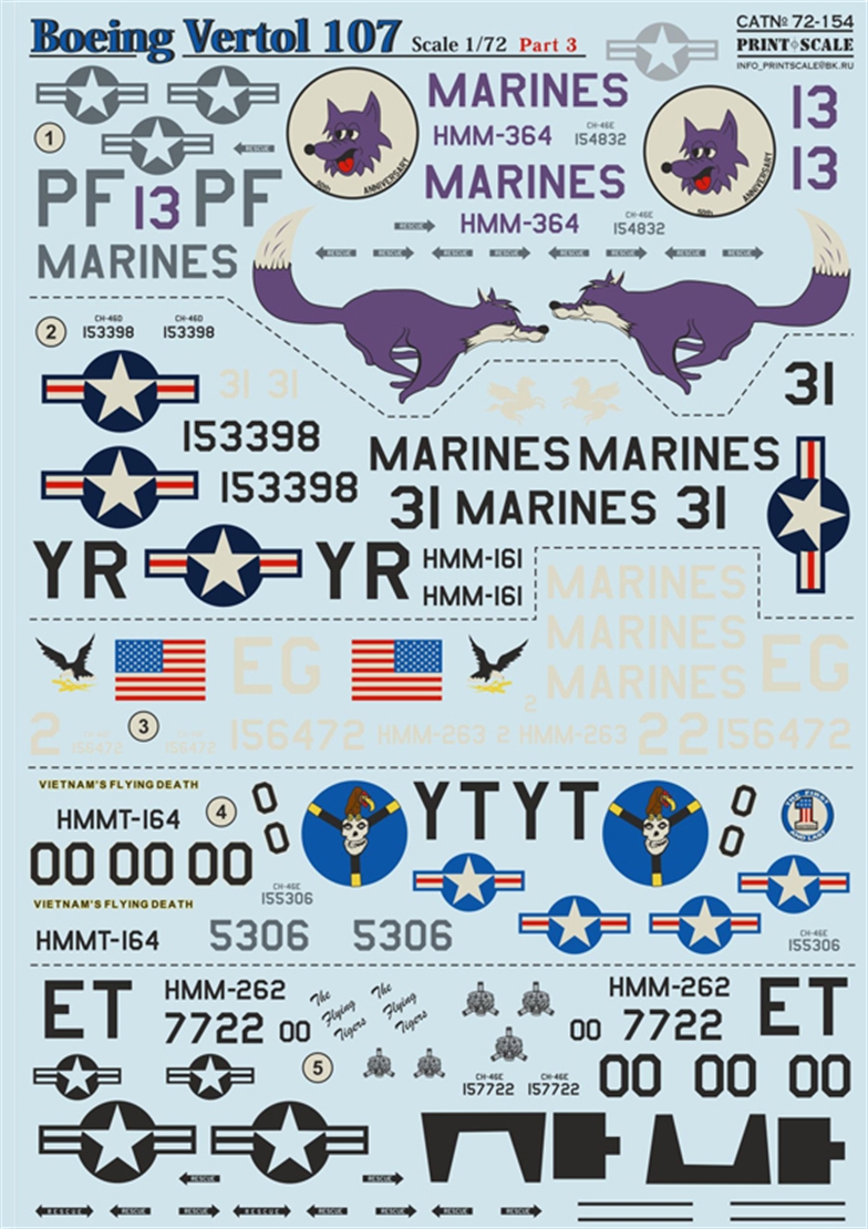 PRINT Maßstab - 1/72 Boeing-Vertol 107 Part 3 (wet decals)
