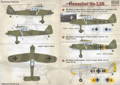 PRINT Maßstab - 1/72 Henschel Hs 126 (wet decals)