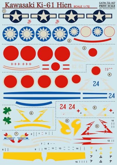 PRINT Maßstab - 1/72 Kawasaki Ki-61 Hien (wet decals)