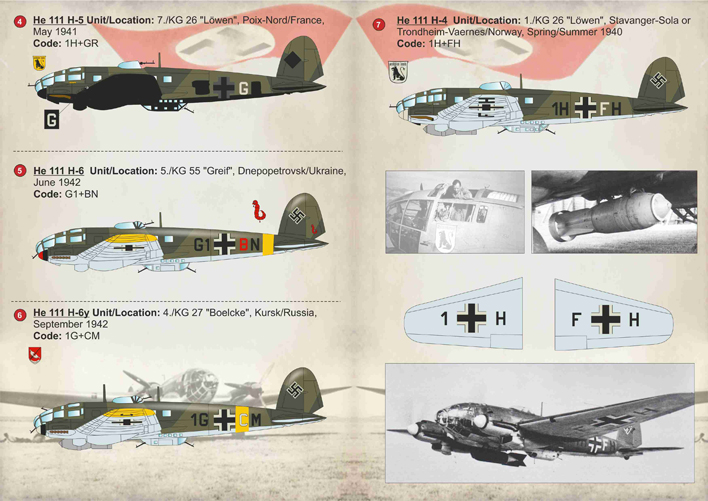 4.He 111 H-5 Unit/Location: 7./KG 26 Lowen, Poix-Nord/France, May 1941. Code: 1H+GR.