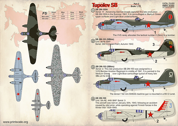 3. SB-2M-103 (SBbis) Serial: 2. This late production SB 2M-103 was assigned to a VVS Bomber Aviation Regiment in middle of 1941. It is painted in the Medium Green over Light Blue camouflage typical of many late SBs at the time.
